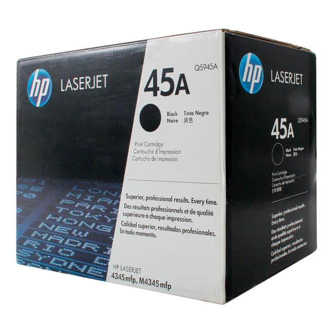 Los cartuchos de tóner HP 45A Negro con codigo Q5945A cuentan con altos estándares de calidad de impresión y al mejor precio del mercado, recuerda que un cartucho que se encuentra en venta de tóner HP original cuentan con un chip original fabricada especialmente para contabilizar la cantidad de impresión de alta calidad que usted realice en su impresora.